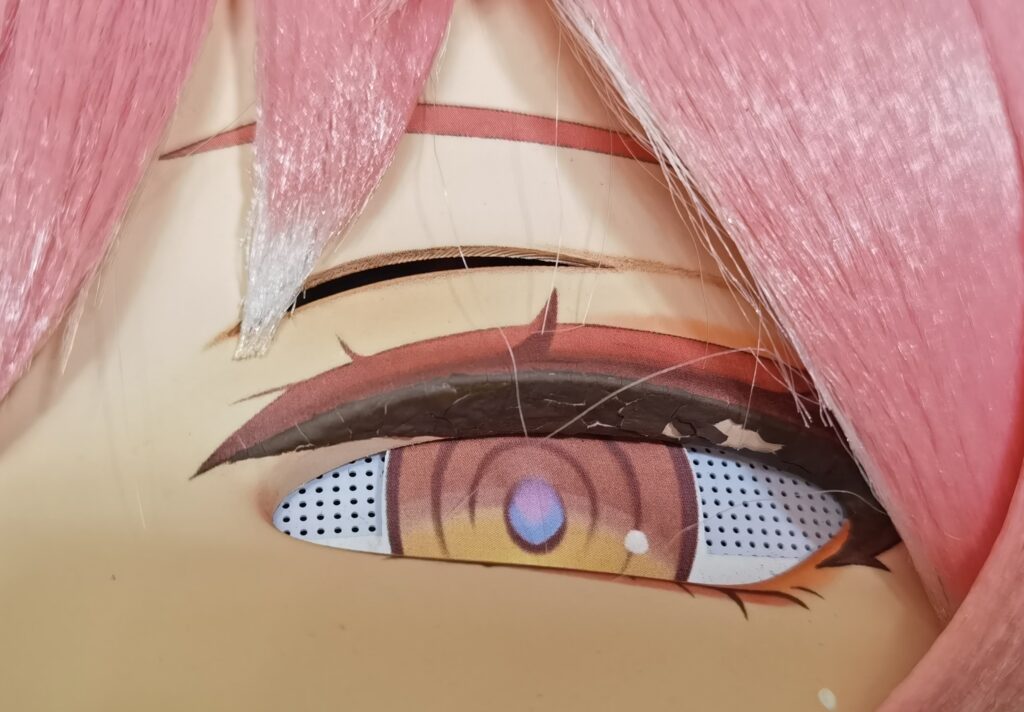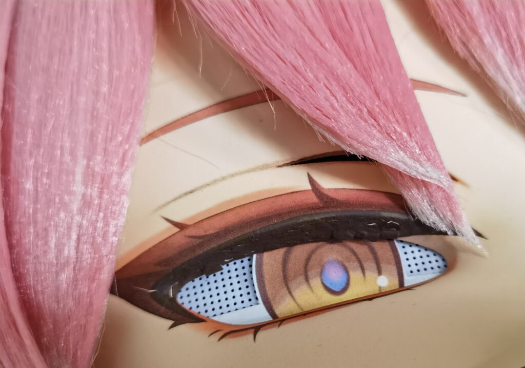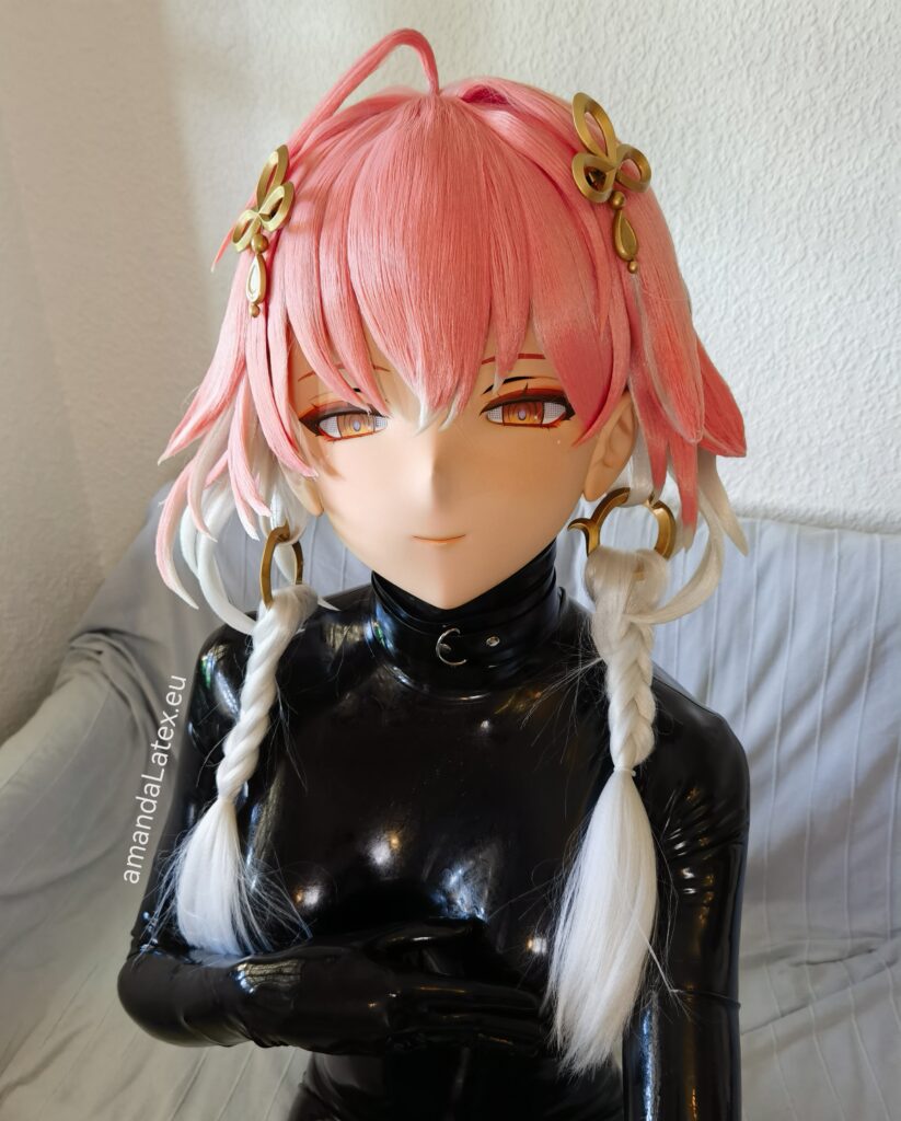 Bought in summer 2024, this custom-made kigurumi of the character Changli from Wuthering Waves is a full face mask with side locks. It includes 3D printed accessories.